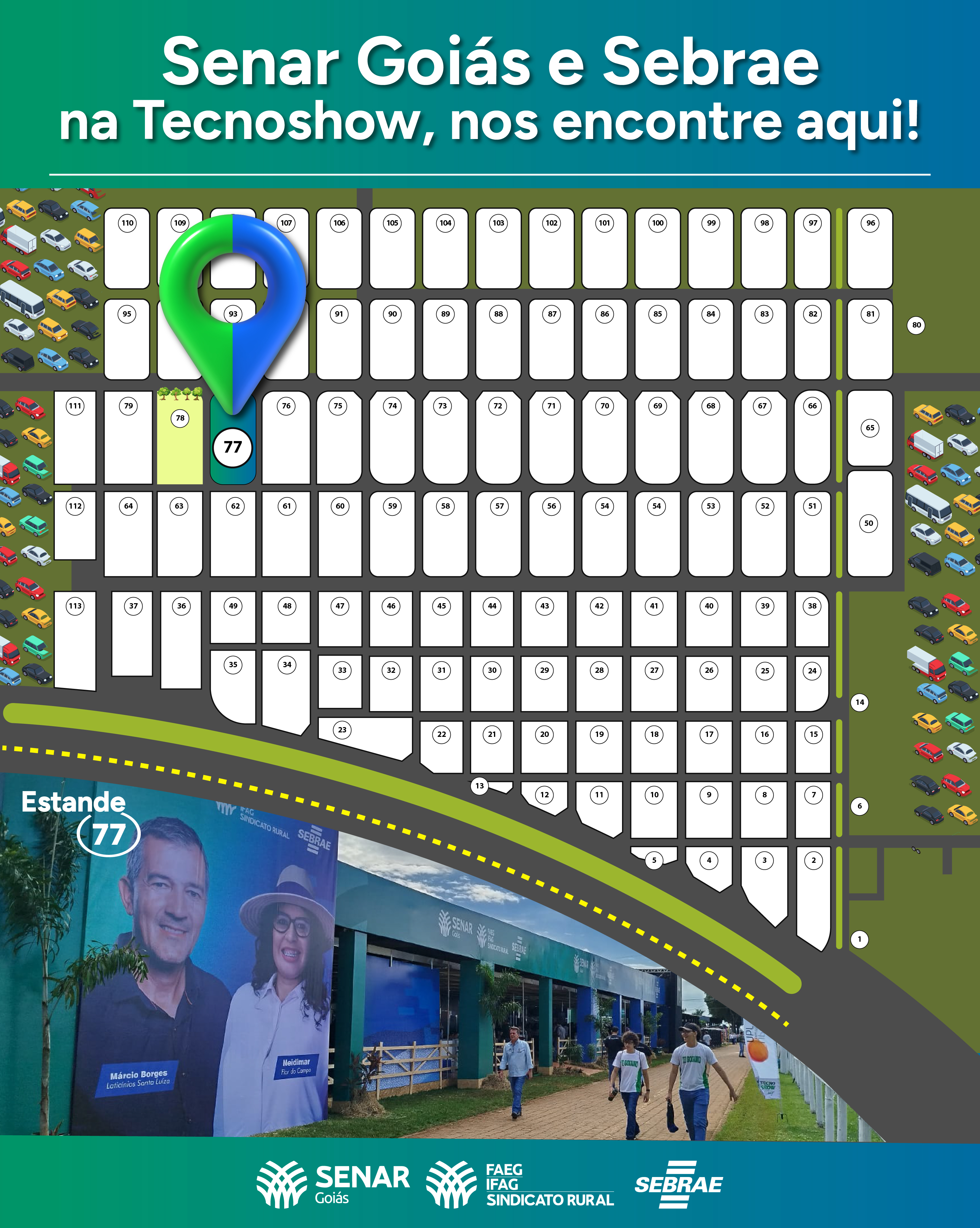 Ao longo dos cinco dias de Tecnoshow Comigo 2026, o estande do Sistema Faeg/Senar/Ifag em parceria com o Sebrae Goiás apresenta uma programação contínua, dinâmica e voltada à capacitação e ao desenvolvimento do produtor rural.