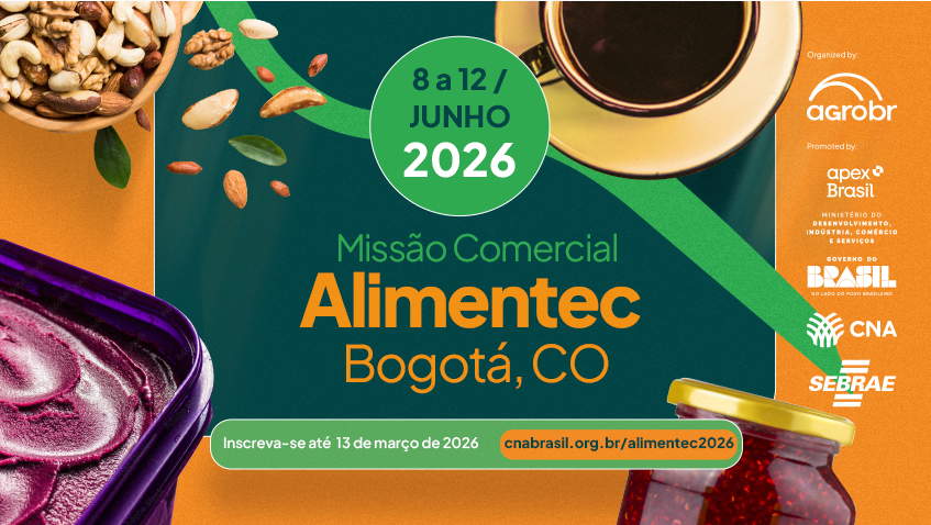 Estão abertas, até o dia 13 de março, as inscrições para a Missão Comercial agroBR à ALIMENTEC 2026, uma das mais relevantes feiras internacionais do setor de alimentos e bebidas na América Latina. A agenda será realizada de 8 a 12 de junho de 2026, em Bogotá, Colômbia, e contará com programação estratégica ao longo da semana, incluindo visitas técnicas e rodadas de negócios com compradores internacionais.