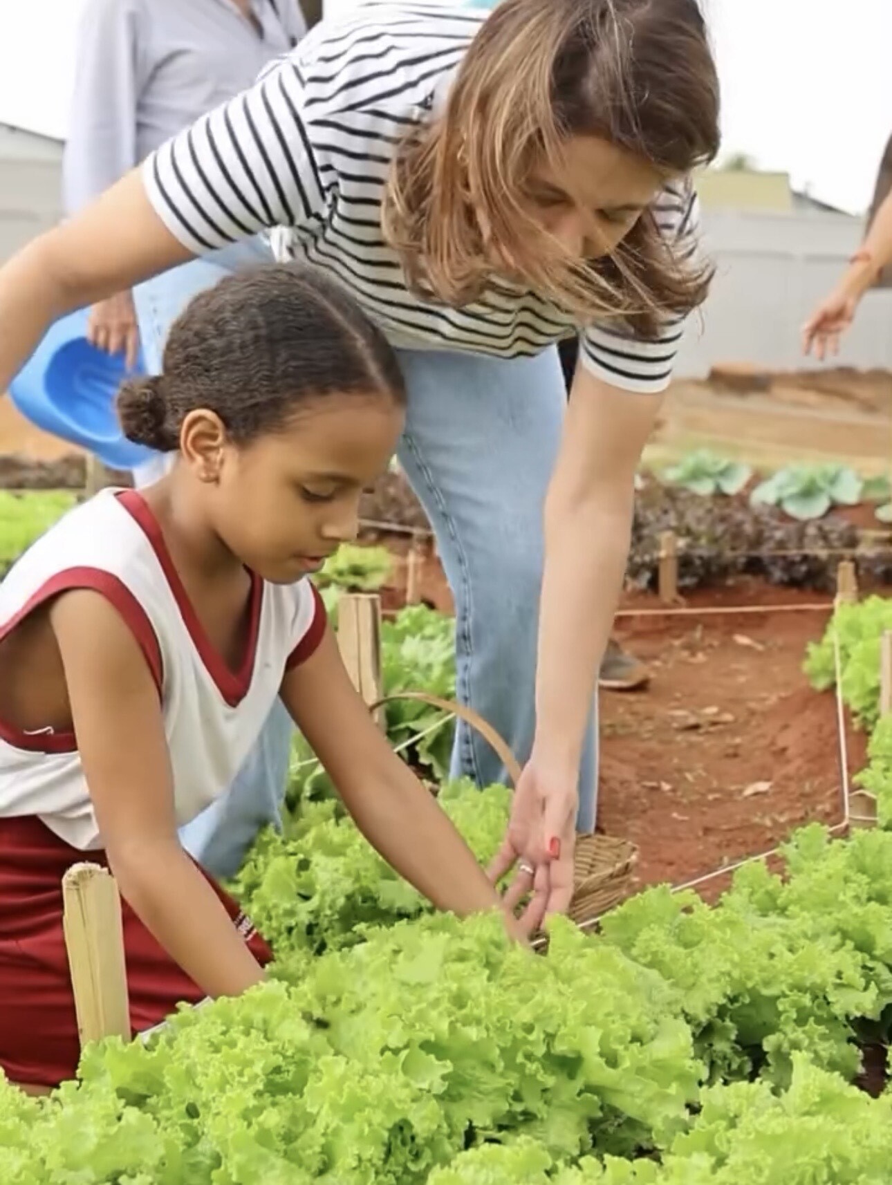 As crianças da Escola Municipal Valdir Gonçalves de Aguiar, no Jardim Tiradentes, estão vivenciando uma experiência que vai além da sala de aula: colher as primeiras hortaliças cultivadas na própria unidade escolar. Alfaces, coentro e couve fresquinhos saíram dos canteiros para enriquecer a merenda, mostrando na prática o ciclo completo, do plantio ao prato.