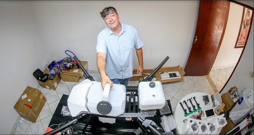 Com os conhecimentos adquiridos nos cursos do Senar Goiás, experiência de mercado e mais estudo, depois de um tempo Marcos resolveu empreender. Passou a fabricar drones sob medida e criou uma marca própria, a Dronedeal. “Eu trabalho com drones de pulverização. A pessoa escolhe o drone com a câmera que quer, com capacidade de 5 a 50 litros, à bateria ou híbrido, sendo à bateria ou à gasolina”, explica.
