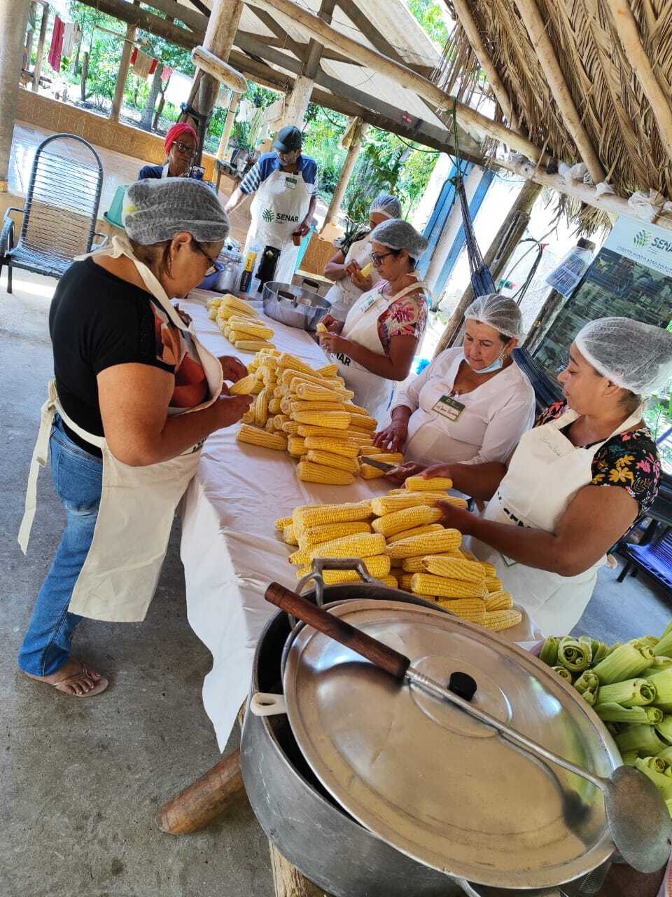 Pensando que a produção no campo pode ser também oportunidade para aumento nas receitas com as delícias culinárias, o Senar Goiás aproveita a época para ensinar como processar o milho verde e seus derivados em receitas deliciosas. No mês de junho, moradoras de Joanápolis, distrito de Anápolis, participaram de curso e serviram seus produtos para os visitantes do 10º Festival do Milho. “O curso ensina a trabalhar o milho verde e seus derivados, como torta salgada de milho com linguiça de frango, bolo de fubá com coco e queijo ralado, bolo de fubá com erva doce, broa salgada, curau de milho verde e canjica de amendoim. A nossa intenção é que, além de saber aproveitar o que produzem no campo, isso se torne até uma nova fonte de renda para a família”, enfatiza o instrutor do curso, Cristiano Ferreira.