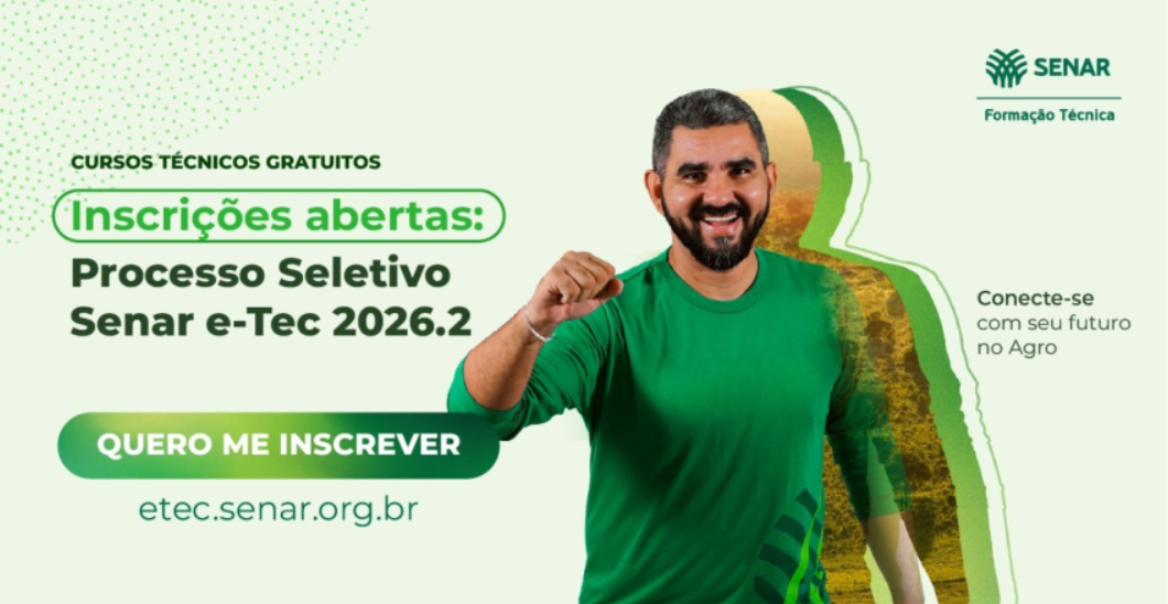 Não podem participar candidatos que estejam atualmente matriculados em cursos técnicos do Senar ou que tiveram matrícula cancelada na instituição nos últimos dois anos. Os interessados podem acessar o edital completo e realizar a inscrição pelo site: https://etec.senar.org.br/processo-seletivo